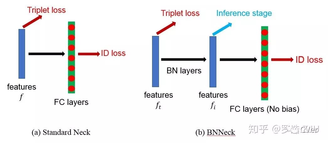,其实改变并不大。而BNNeck的话还有BN层的参数可以吸收梯度,相对来说对