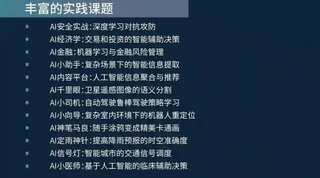 知识与实践结合,回归真实场景,最短时间完成可展示 AI 项目成果,用 AI 解决真实世界的问题