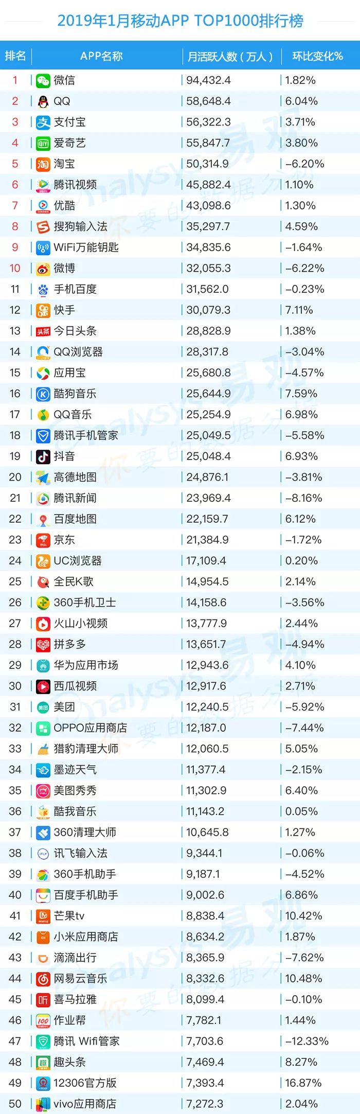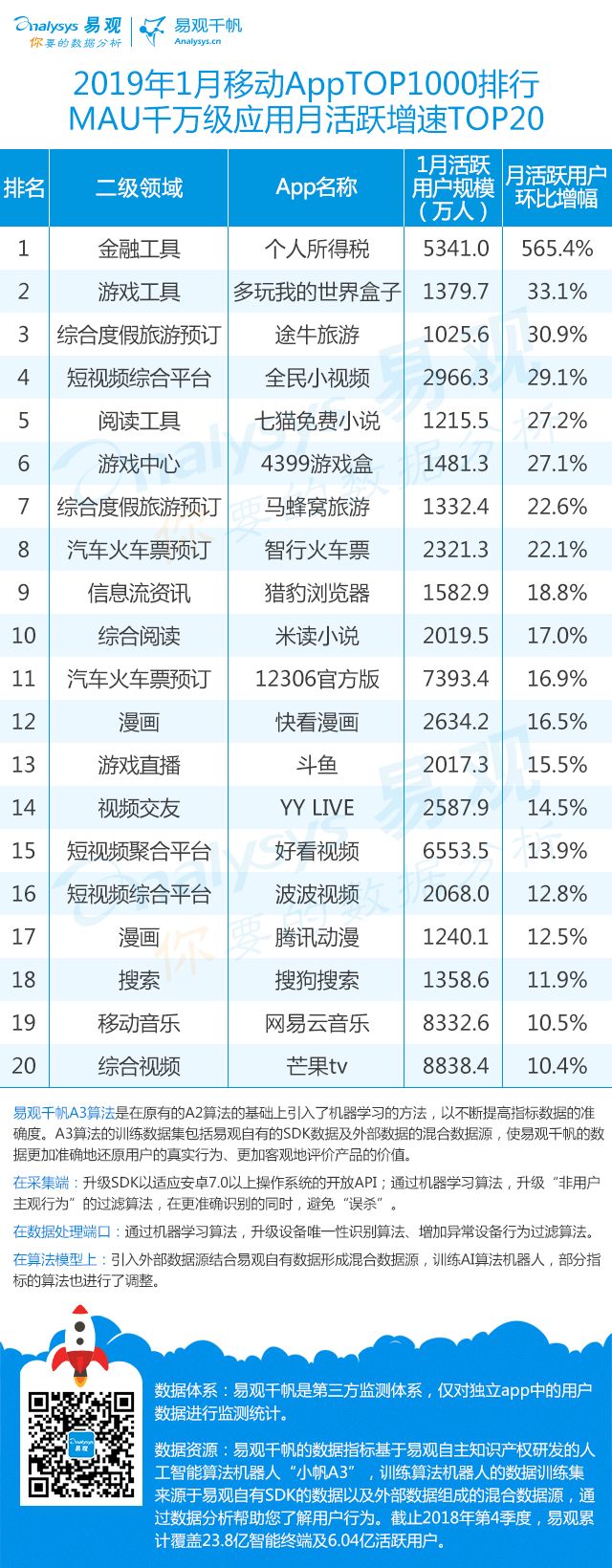 新年呈现新变化,2019年开局之势究竟如何?一起看看最新移动App TOP1000榜单及分析吧。