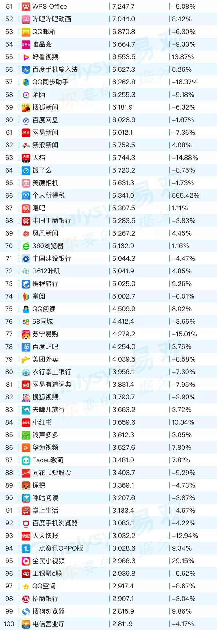 得益于新个税法于2019年1月1日起施行,个人所得税App的专项附加扣除信息填报功能于2018年12月31日正式上线使用,通过App可远程办理新增六项专项附加扣除需求,大幅提升了用户活跃度。本次税改力图有效进行贫富调节、增加居民整体可支配收入,受到工薪阶层为主的受众关注,最终,本月个人所得税App月活环比增幅高达565.4%。