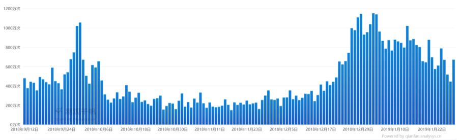 2018年9月-2019年1月智行火车票用户启动次数