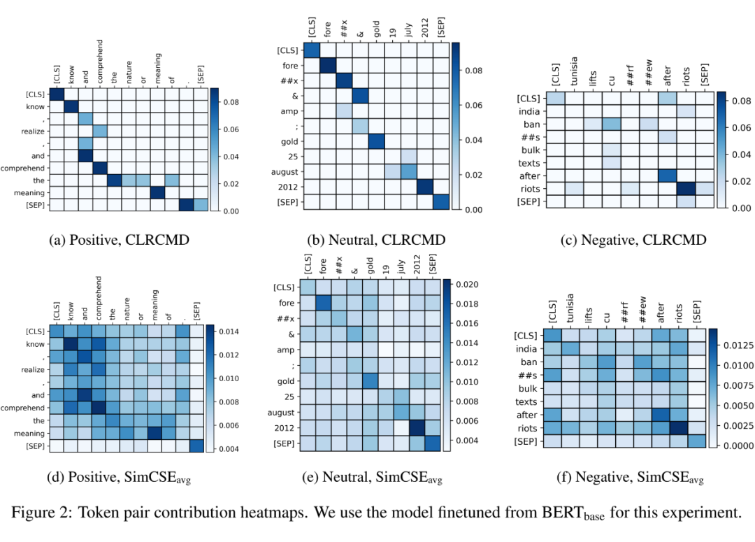 2. CLRCMD 直接将句子对的相关性提炼成语义对齐的标记对的相关性。从这个意义上说,我们的上下文嵌入空间有效地从训练句子对中捕获了标记级的语义相关性,从而为其句子相似性提供了更好的解释。