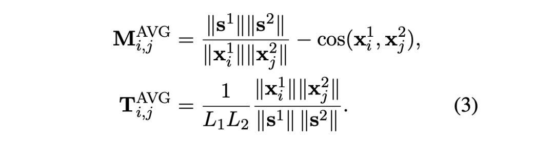 这种方式得到的传输矩阵只有在语义对齐的 token pairs 的位置会有一个非零值,因此该矩阵的秩大于 1,这意味着它可以表达两个句子之间更复杂的标记级语义关系。(之前平均池化+余弦相似度的方法得到的传输矩阵在所有 token pairs 的位置都可能有非零值,理论上秩等于 1)