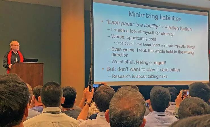 遗憾是从哪里来的?Vladlen Koltun 有句话说「每篇论文都是障碍」,因为糟糕的论文可能会影响自己一生的学术名誉,可能会浪费了时间以至于做不了更有影响力的事情,甚至更糟糕地,可能会把整个领域引向错误的方向。而且也会长期带有这种负罪感。但是也不能只顾着安全,做学术研究就是需要冒一些险的。