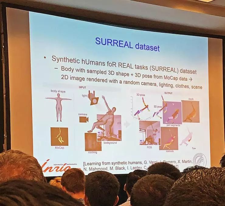 针对人体动作识别任务,Cordelia Schmid 介绍了她对数据问题的解决方案 SURREAL Dataset,这是一个合成的三维人体动作数据集,有良好的可迁移性,也有许多不同级别的标注。