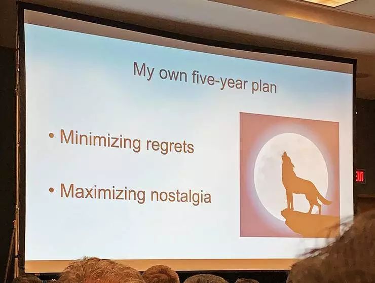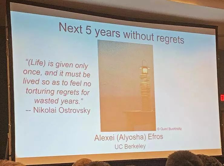 所以他真正的演讲题目是:「没有遗憾的未来五年」。预测五年很难,但是可以做尽量不让自己后悔的事情。也是借机谈一谈自己学术经历中的一些感想。