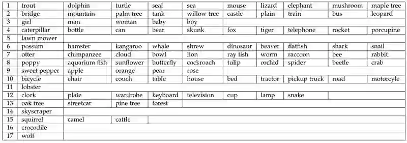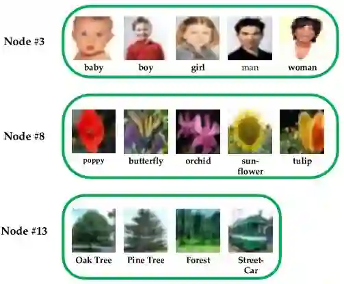 对于 CIFAR-100 数据集,作者将 100 类数据分为 10 组,每组包含 10 类样本。在网络方面,作者将根节点网络的卷积层改为 3,并改变了全连接层的输出数目。