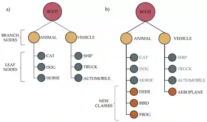 同样,我们将会对别的支节点继续上面的操作。通过上面的这些操作,实现对新类别的学习,文中称这种学习方式为 incremental/lifelong learning。