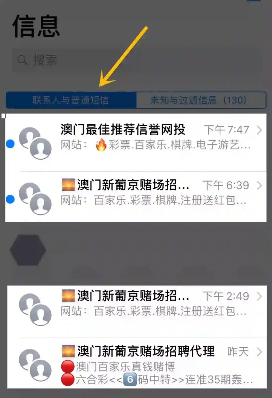 花擦,群组短信居然绕过了拦截,直接显示在短信列表里?