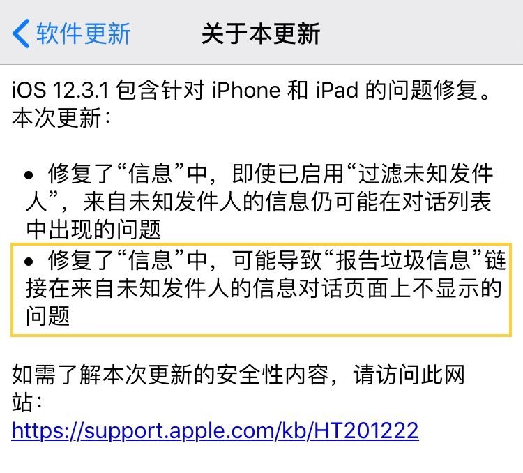 就在两天前,苹果推送的 iOS 12.3.1 正式版,已经解决了小雷上面说的这个群组消息漏洞。