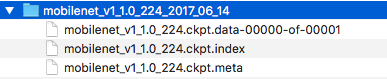 因为我并非从零开始训练这个模型,所以当我运行训练时,我需要指向我将要建立的预训练模型。我选择使用MobileNet模型——它是针对移动设备优化的一系列小模型。虽然我不会直接在移动设备上训练模型,但MobileNet将会快速训练,并允许更快的预测请求。我下载了这个MobileNet检查点用于训练,检查点是一个二进制文件,包含训练过程中特定点的TensorFlow模型的状态。下载并解压缩后,你可以看到它包含的三个文件: