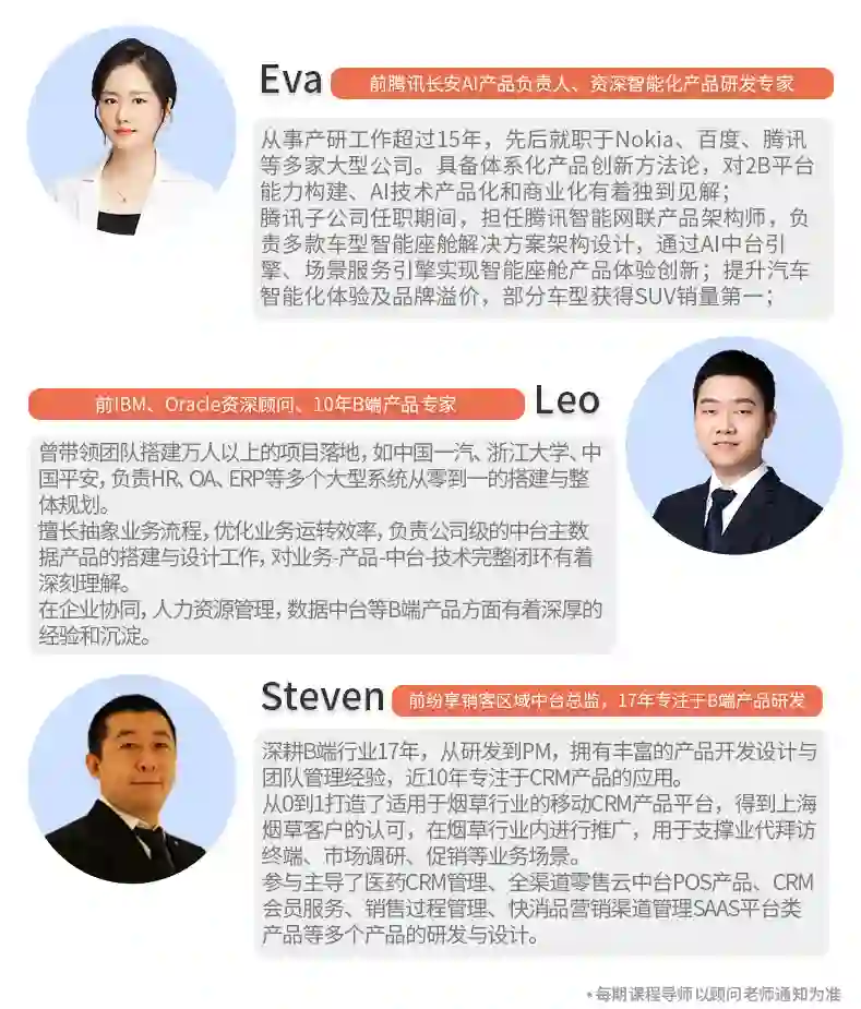 于是,我们在一线互联网公司产品专家/总监以上职位,且有操盘过丰富大体量项目的候选导师中,不断筛选、寻找最合适的人选。