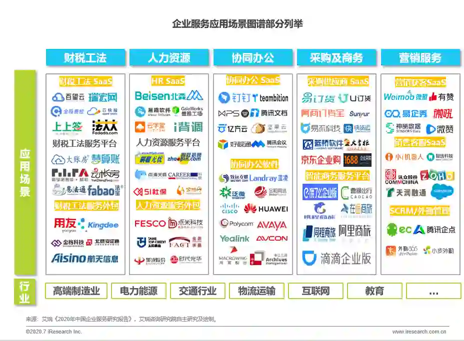 其实,除应用于营销获客的CRM产品之外,在企业服务的其他应用场景(如人力资源、协同办公、资源管理、金融服务、采购供应、物流服务、开发服务和IT基础资源等)中的B端产品,近年来也取得了快速的发展。