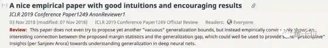 Yoshua Bengio同样开展过有关深度学习泛化问题的研究,他的团队提出了一个深度学习泛化保障方案(《Generalization in Deep Learning》),这篇ICLR 2019的论文里也引用了他们的文章。