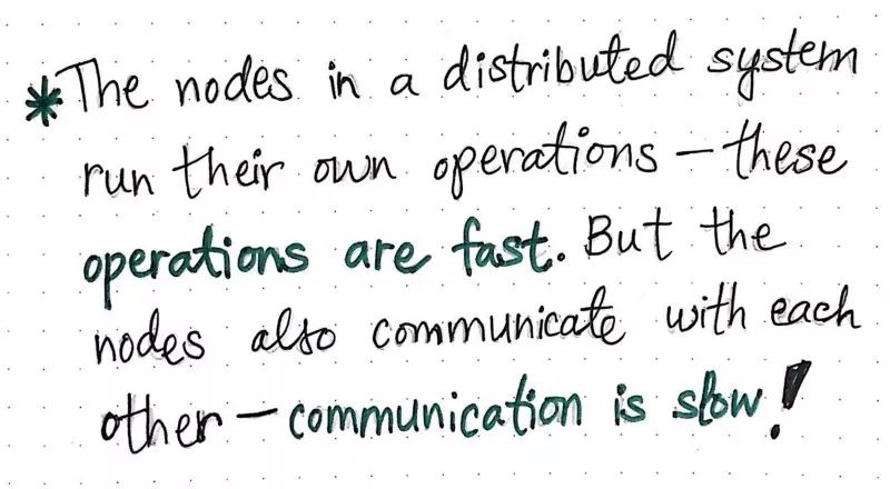 节点中的操作 (图译:分布式系统中,节点里的操作很快,但节点间的通讯很慢)
