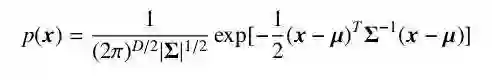 对于一个随机向量 x,如果它的联合概率密度函数符合公式2-9,则称它服从高斯分布,并记为 x ∼ N(µ, Σ)。