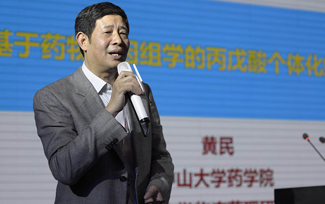 中山大学临床药理研究所所长黄民教授做了题为《基于药物基因组学的丙戊酸个体化给药研究》的报告。黄民教授作为项目负责人已主持完成近百个药物的非临床、临床评价工作。在药物代谢酶及转运体基因多态性及其与临床药物疗效和不良反应相关性有较为深入的研究;在中药药物代谢相互作用及其调控机制、临床药物相互作用预测、临床合理用药方面有较深入的探讨。黄教授以丙戊酸为例具体介绍了他们在药物代谢开展个体化用药方面的工作。黄教授希望能够通过他们的工作找到相关的生物标志物,从而可以真正能够指导临床用药。