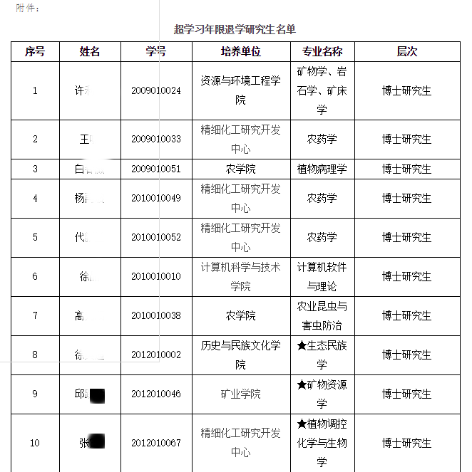 又有一批研究生拟被退学,来自两所双一流高校。