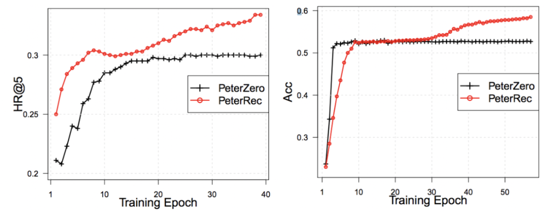 论文首次证实采用无监督预训练方式非常有效,论文对比 PeterRec 的两种设置,有无预训练下的实验效果,如图 4 中所示 PeterRec 大幅度超越 PeterZero,证实了本研究预训练的有效性。
