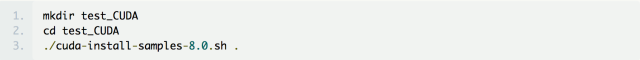 可通过运行例子来检测安装是否成功。下面命令创建一个 test_CUDA 文件夹用于存储示例。