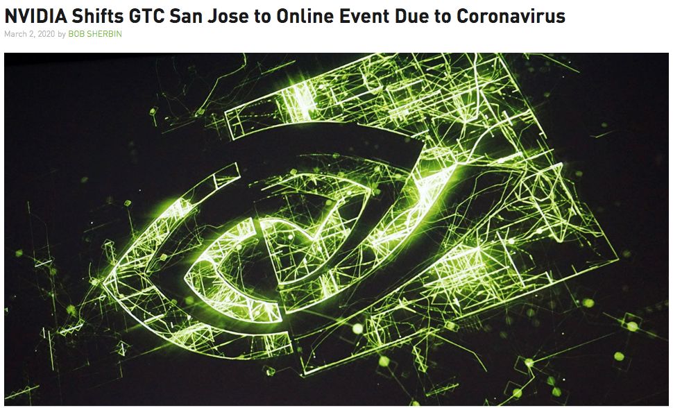 Nvidia GTC – GPU技术大会发布内容不会取消,仍将在3月22日至26日进行,只是由圣何塞会议中心转为线上数字会议