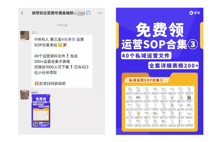 其实,现在市面上的活动形式很多,比如做SCRM的品牌媒想到,通过一个群通知+一张活动海报,让用户感受到了社群运营的有趣、有用,从而实现转化。