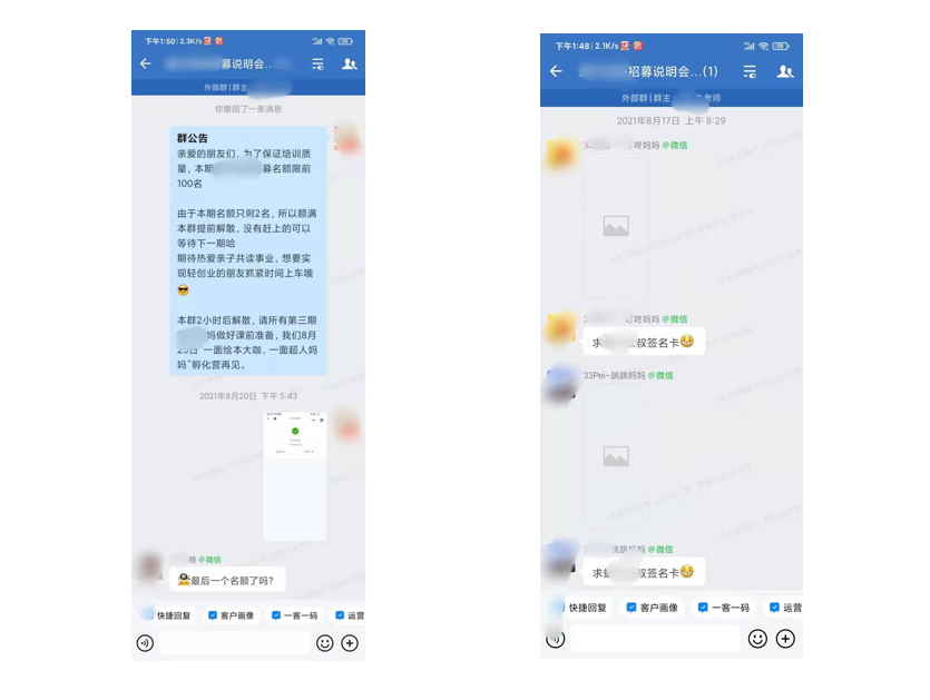 另外,讲师的荣誉称号、社会头衔、社会身份也更容易号召用户参与进来,从而提升参与度、互动率、完课率,为后续的社群转化埋下伏笔。