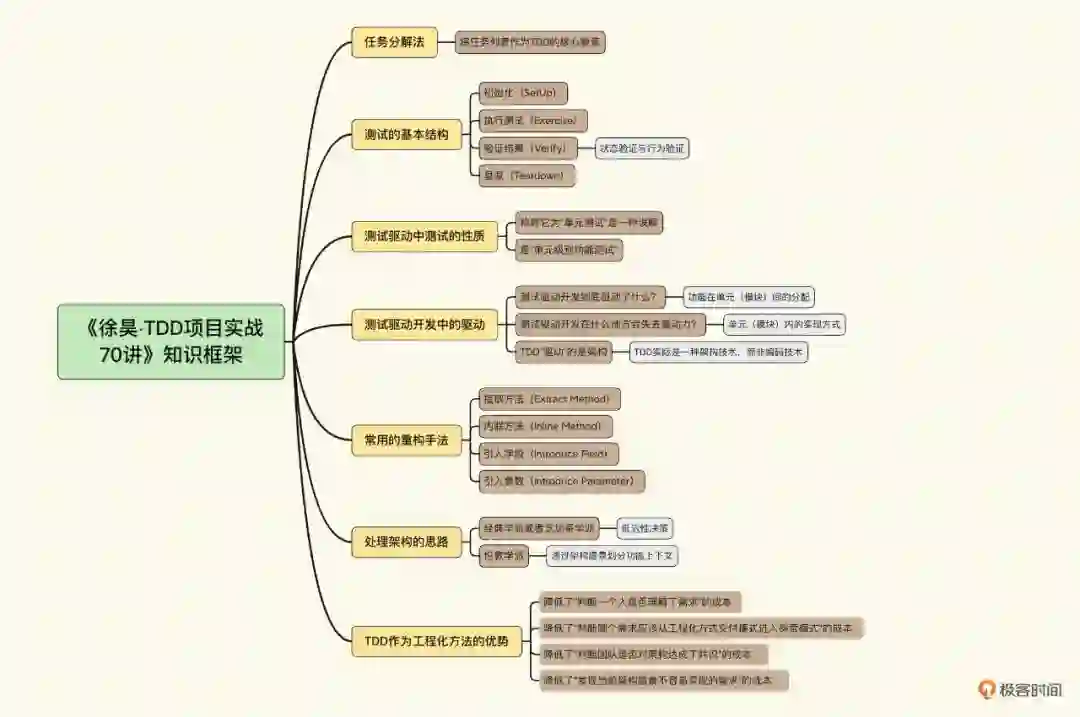 然后他会围绕这个例子,详细讲解 TDD 的核心理念与方法,带你深入讨论 TDD 中的测试到底是什么样的测试,TDD 是如何驱动我们的开发。他还会介绍 TDD 的经典学派(芝加哥学派)与伦敦学派不同的切入点。