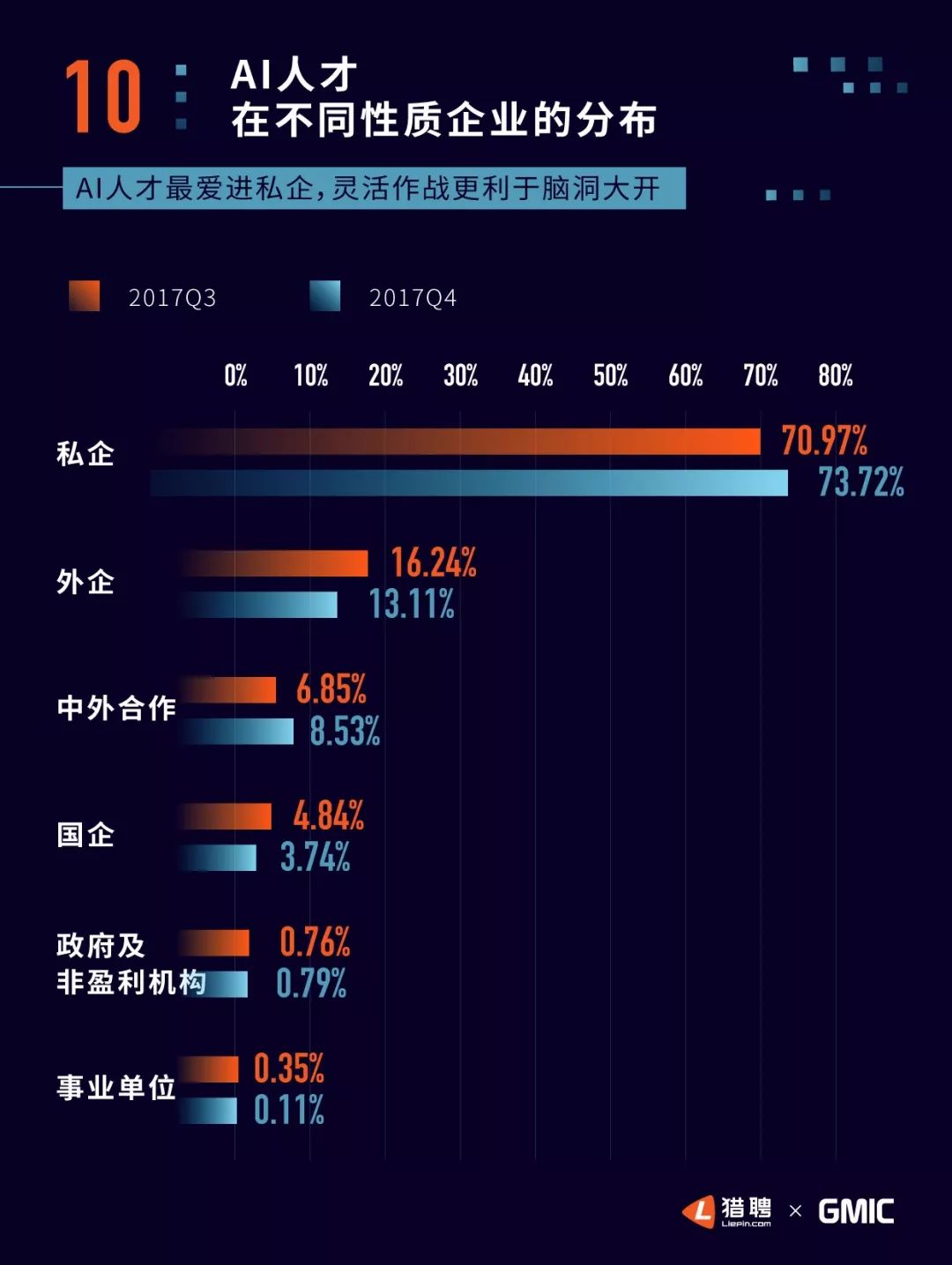 相反,在大习惯的认知当中,文化相对刻板、管理相对僵化的国企、政府及事业单位则很难获得AI人才的青睐。