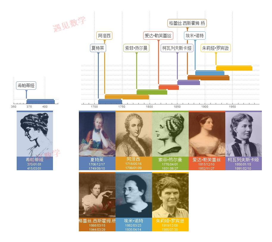 翻开数学史, 许许多多数学大师的名字你一定耳熟能详, 但是女性数学家寥寥无几. 但这并不意味数学家这个角色更适合男性, 而是因为旧社会对女性的偏见大和压迫造成的. 这次@无双1729 姑娘制作出来 9 宫格图片, 以此回顾这些杰出的女数学家和她们注定不平凡的一生......