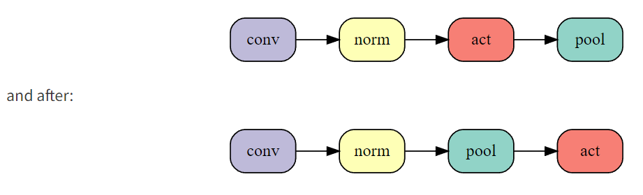 最大池化往往在激活函数(如 ReLU)的后面进行。但是如果首先进行池化会更高效。在一个卷积-池化块中,研究者调换了激活函数和池化的顺序。