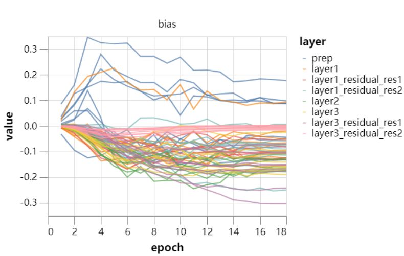 如果批归一化的通道缩放尺寸有很大变化,这可能会减少有效的通道数量。让我们来看看这些参数在训练中的动态变化: