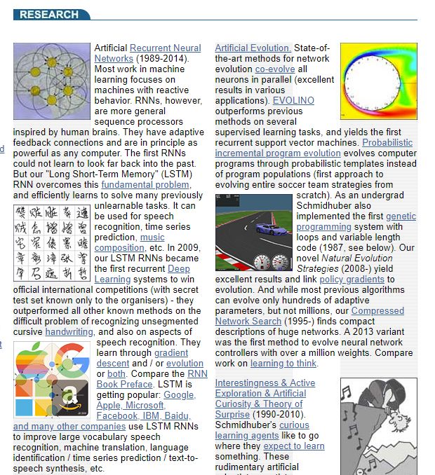 他的在线简历精心编制了他在学术界的历程,包括诸如“加州理工学院拒绝了他的博士后申请”等等,到现在,Schmidhuber的个人主页也是颇有特色。