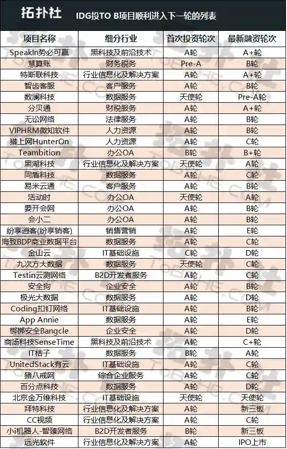 当然,拓扑社(ID:tobshe)并不想在这里讲解如何寻找优秀的 To B 项目。拓扑社(ID:tobshe)今天整理了一份投资机构在企业服务方向上的「精准度排行榜」。