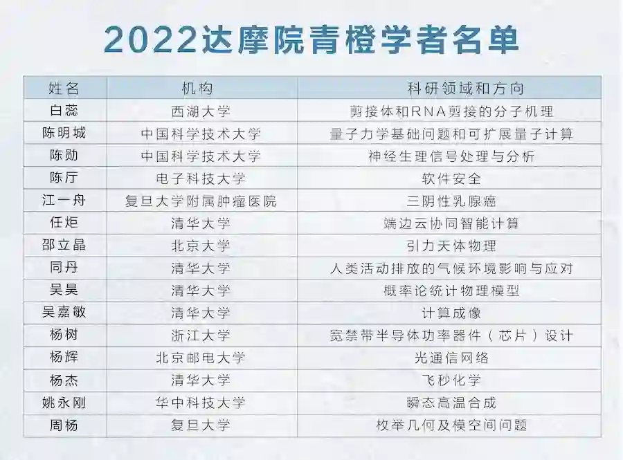 2022 年 10 月 31 日,第五届达摩院青橙奖名单公布,白蕊、陈明城、陈勋、陈厅和江一舟等 15 位中国青年科学家获奖,每位获奖者将获得可任意支配的税前 100 万元奖金以及阿里巴巴全方位科研支持。