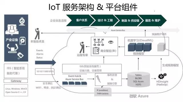 3、增强组件和局部层级的预测准确度,从而改善预防性维护与维护-修理-大修(MRO)的性能。把机器学习的数据库、应用和算法集成到云计算平台已经很普遍了,亚马逊、谷歌和微软的云平台公布就可以证明这一点。下面的图片解释了机器学习是如何集成到 Azure 平台上的。微软授权 Krone 使用 Azure 平台,让他们得以把制造运作流程自动化,以实现工业 4.0 目标。