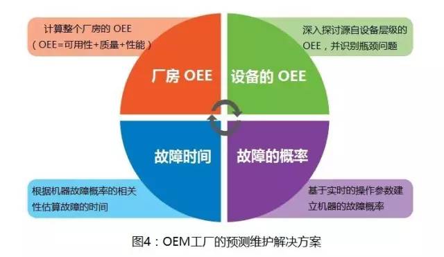 4、实现状态监控流程,让制造商得以在厂房层级上管理整体设备效率(OEE,Overall Equipment Effectiveness),并将 OEE 从 65% 提高到了 85%。一家与塔塔咨询服务公司(Tata Consultancy Services)合作的自动化原始设备制造商(OEM)改善了他们的生产流程,此前他们冲压线的 OEE 一度跌至65%,停工时间达到了 17% 到 20%。他们的解决方法是,12 个月中,每 15 秒从设备上收集 15 个操作参量的传感器数据(比如油压、油粘度、油渗漏以及气压),并进行集合。解决方案的组件图下图所示: