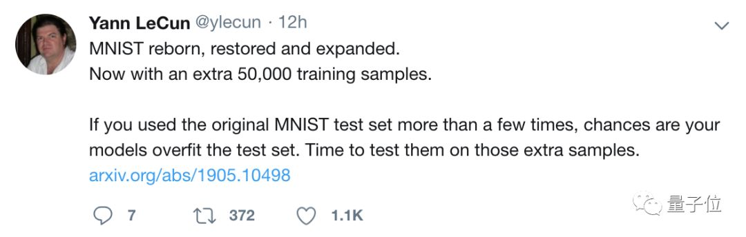 现在,来自纽约大学两位研究人员给MNIST测试集再增加5万张图片,叫做QMNIST,获得校友、也是MNIST发起者LeCun转发。