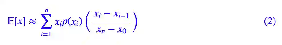 这里不讨论“有代表性”是什么意思,也不讨论提高数值计算精度的方法。这样写出来,是为了跟采样计算对比。如果从 p(x) 中采样若干个点 x1,x2,…,xn,那么我们有: