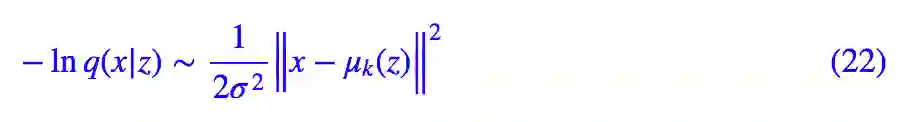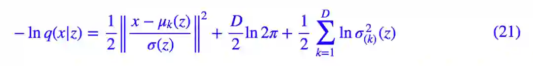 该式中的每一项,可以在把 (16),(19),(21),(22) 式找到。这因为标准的 VAE 只采样了一个,所以这时候它就跟普通的 AE 对应起来了。
