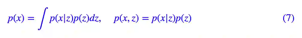 出发点依然没变,这里再重述一下。首先我们有一批数据样本 {x1,…,xn},其整体用 x 来描述,我们希望借助隐变量 z 描述 x 的分布 p(x):