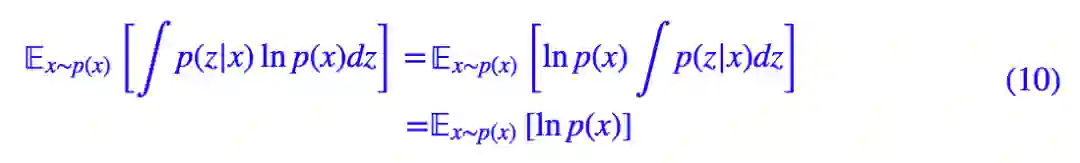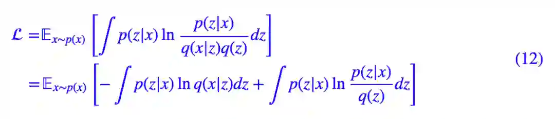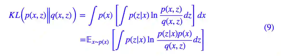 到这里,我们回顾初衷——为了得到生成模型,所以我们把 q(x,z) 写成 q(x|z)q(z),于是就有: