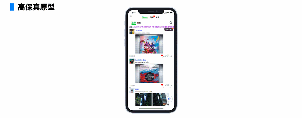 根据《产品规划设计》,输出清晰的产品原型V1.0,包括“首页、社区、信息、我的”四大模块,涵盖具体应用场景及交互设计。