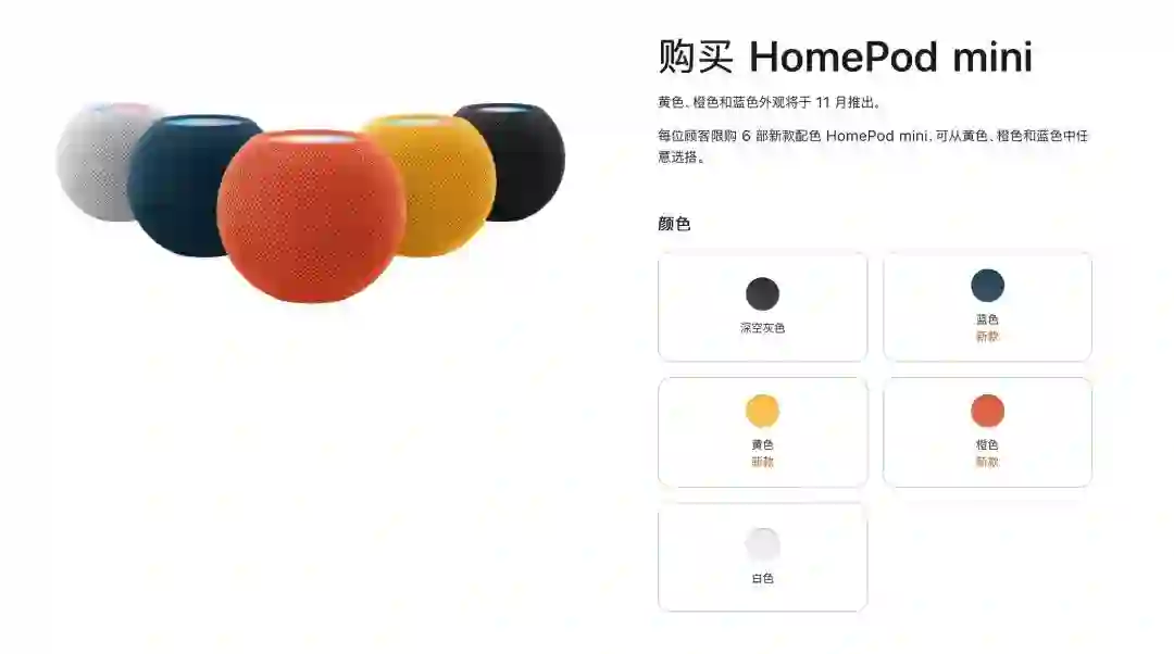 全新配色的HomePod mini今天起正式发售
