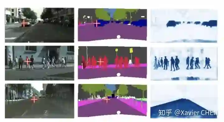 如图第一行第一列,判断十字位置的像素时,不仅仅看单个位置的特征,而是把所有车子的特征放在一起来判断。