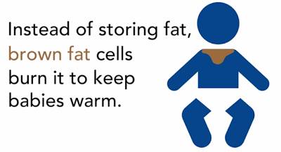 正如前文所提到的,人类含有两类脂肪组织:白色脂肪和褐色脂肪。前者将多余的能量储存在大的甘油三酯微滴(large triglyceride droplets)中,而后者具有更小的微滴以及大量燃烧脂肪以产生热量的线粒体。新生儿具有相对丰富的褐色脂肪(帮助婴儿对抗低温环境),但成年后,大部分褐色脂肪都消失了。