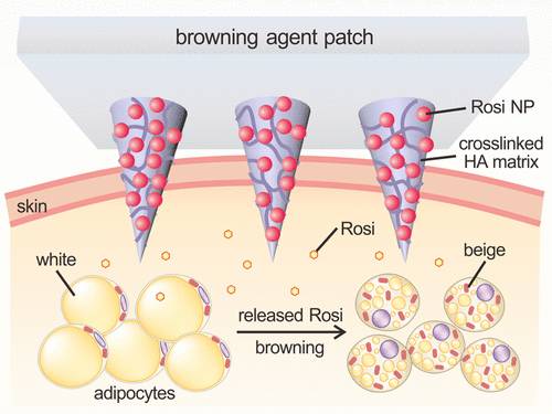 9月15日,发表在ACS Nano杂志上题为“Locally Induced Adipose Tissue Browning by Microneedle Patch for Obesity Treatment”的研究中,来自哥伦比亚大学、北卡州立大学及北卡大学教堂山分校的科学家们设计了一种含药的皮肤贴片,能够在局部将储存能量的白色脂肪转化为燃烧能量的褐色脂肪,同时还能够提高机体的总体新陈代谢。