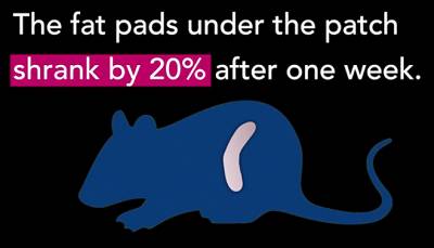 研究人员已经将这种贴片在肥胖的小鼠身上进行了测试。装在纳米颗粒中的化合物是rosiglitazone(Avandia)或β-肾上腺素受体激动剂(CL 316243)中的一种。这两个化合物的作用都是促进褐变。科学家在每只接受治疗的小鼠下腹的两侧贴了两种贴片:一种贴片的纳米颗粒中含有药物,另一种贴片的纳米颗粒中不含药物(简称“空贴片”)。每3天更换一次新贴片,共持续4周。
