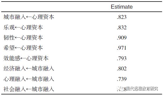 1.心理资本对城市融入水平的结构方程模型