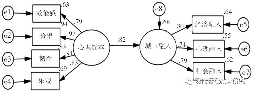 图3 心理资本对城市融入的结构方程模型